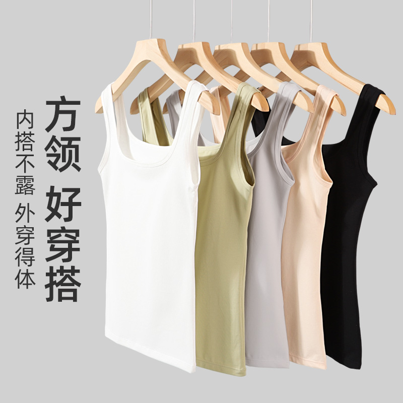 薄款 t恤上衣夏季 吊带 无袖 蝶安芬方领背心女纯色棉质内搭打底修身