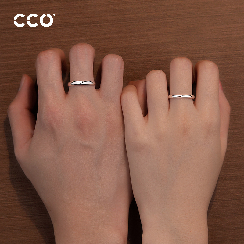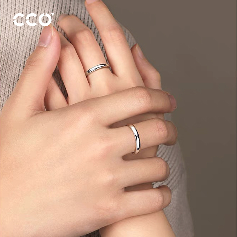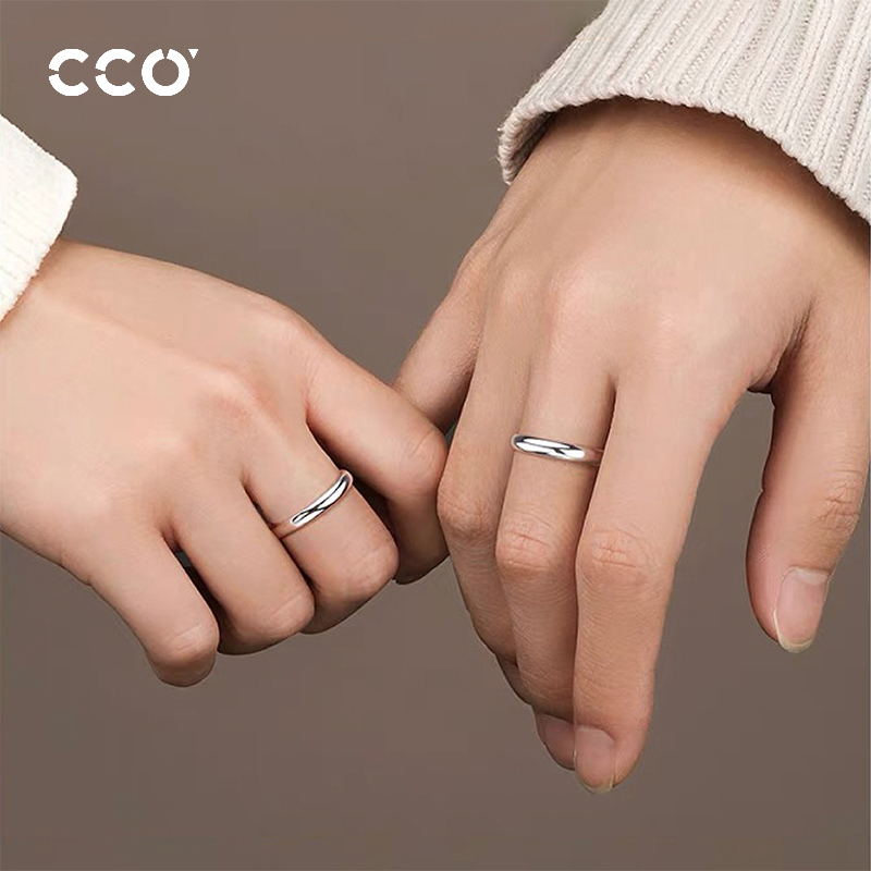 CCO挚爱一生S999纯银情侣戒指男女款 素圈开口对戒指环送女友礼物