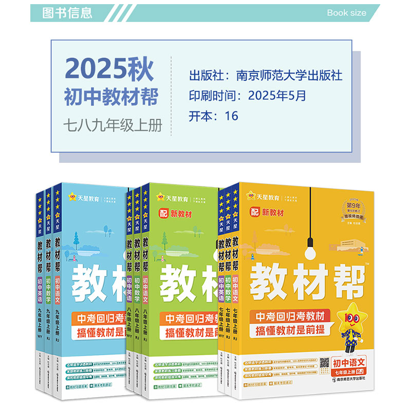 2025秋初中教材帮七年级八年级九年级上册下册语文数学英语物理化学生物地理道德与法治历史任选人教版 初一初二初三同步讲解练习册