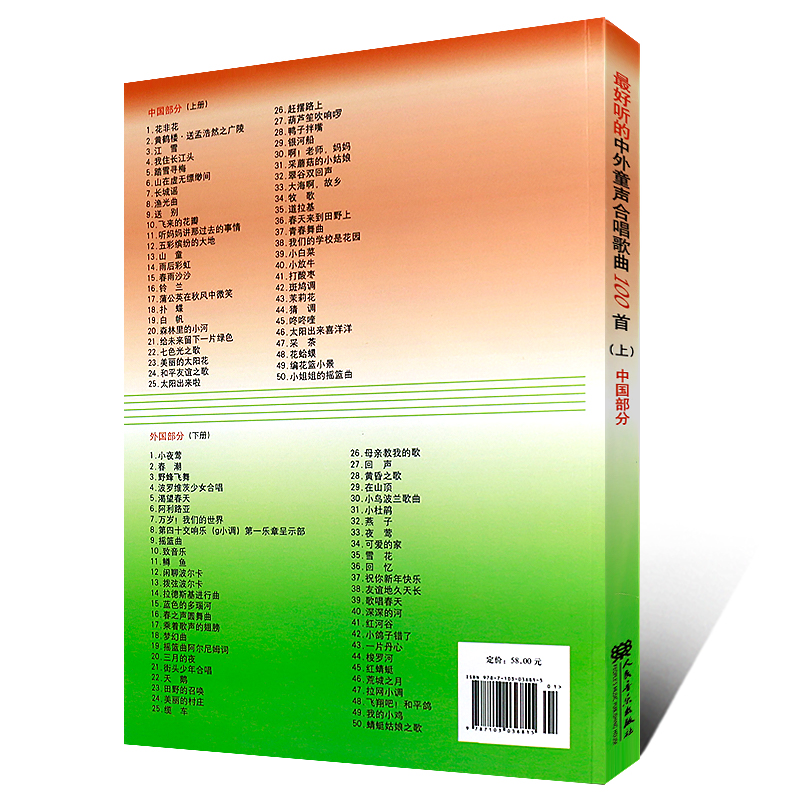 社出版 小学儿童歌曲合唱曲谱书籍 上 经典 儿童歌曲 好歌不断 中外童声合唱歌曲100首 中国部分 编辑部编 正版 人民音乐出版 最好听