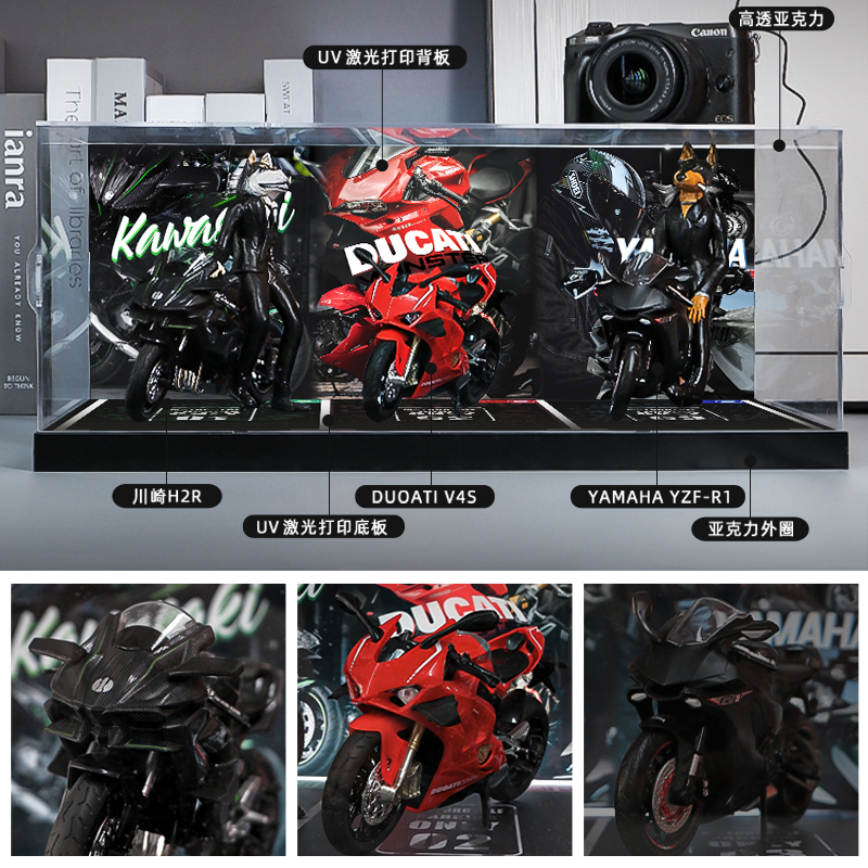 川崎H2R摩托车模型合金机车停车场套装 送男友七夕情人节礼物摆件