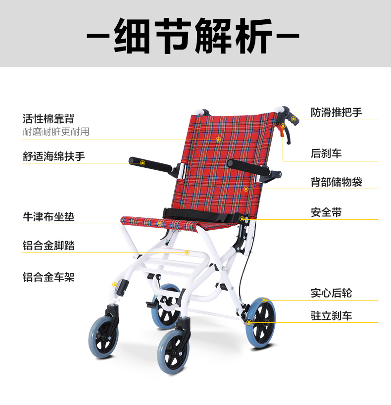 可孚折叠轮椅超轻便小巧上飞机旅游简易便携大人可坐推车代步神器