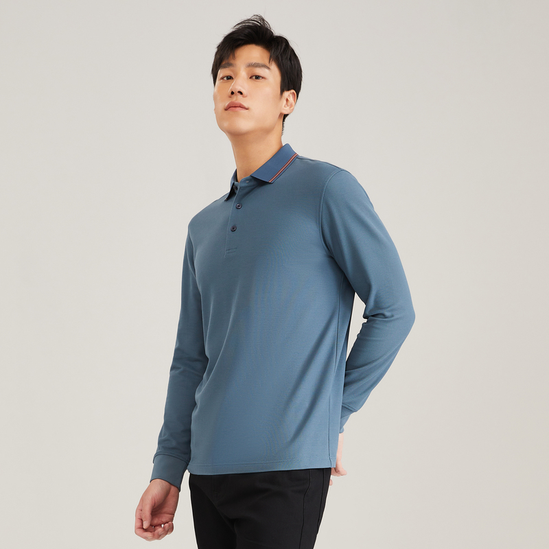 新款 男25年秋季 抑菌棉商务休闲弹力翻领T恤 POLO衫 红豆长袖