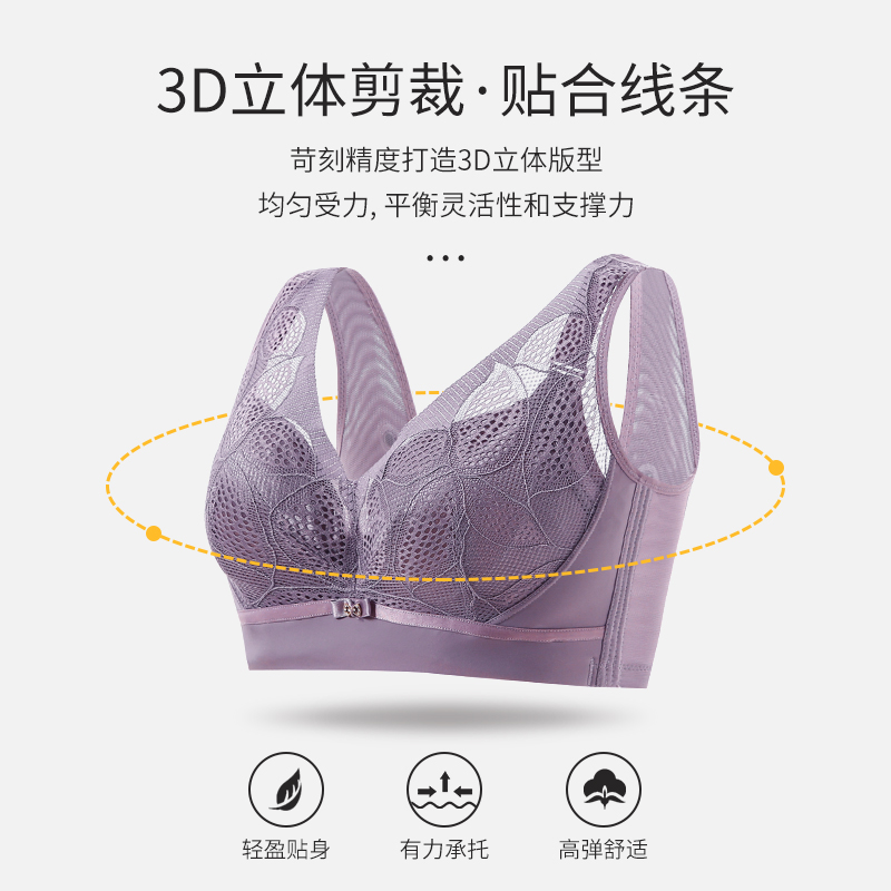 千奈美大胸显小内衣女薄款 全罩杯收副乳防下垂显胸小文胸 无痕大码