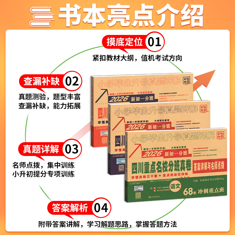 2026版 初一分班真卷冲刺卷小升初小学毕业升学考试试卷模拟真题详解复习书小学生初中测试 四川重点名校分班真卷数学语文英语四川版