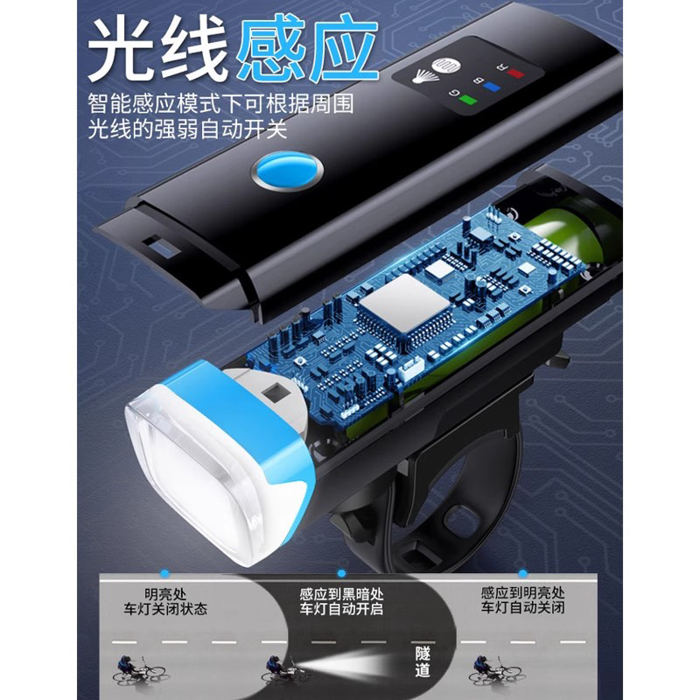自行车前灯强光手电筒单车喇叭充电防雨水山地车夜间骑行装 备配件
