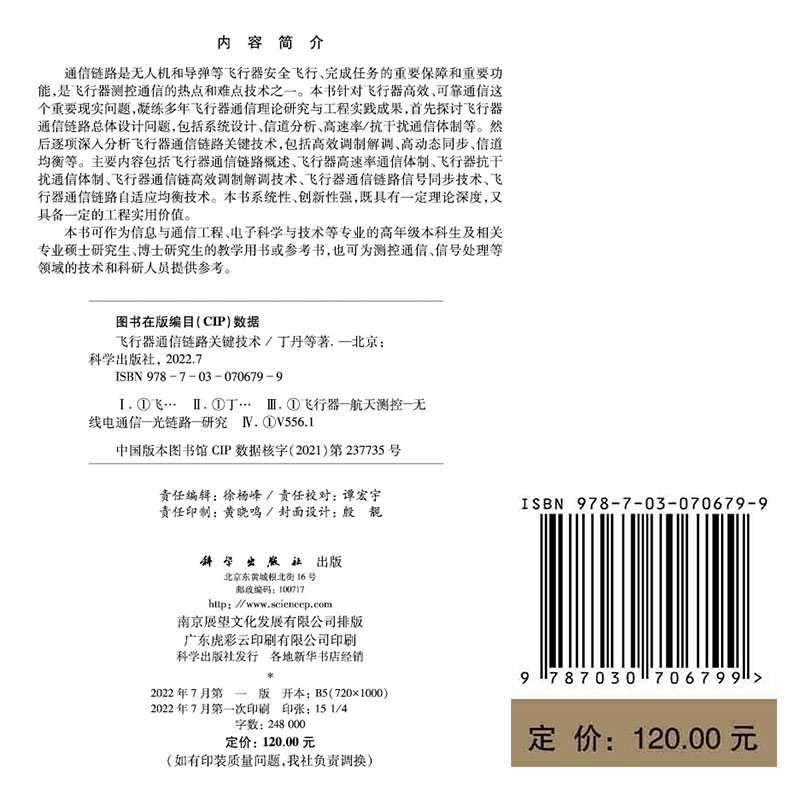 丁丹 飞行器通信链路关键技术 等 科学 社9787030706799 正版 龙门书局出版 现货
