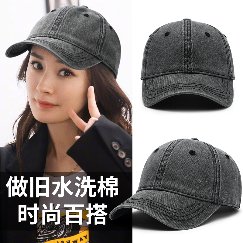 灰色鸭舌帽 潮冬季 新款 做旧棒球帽男女士春秋牛仔棒球帽大头围韩版