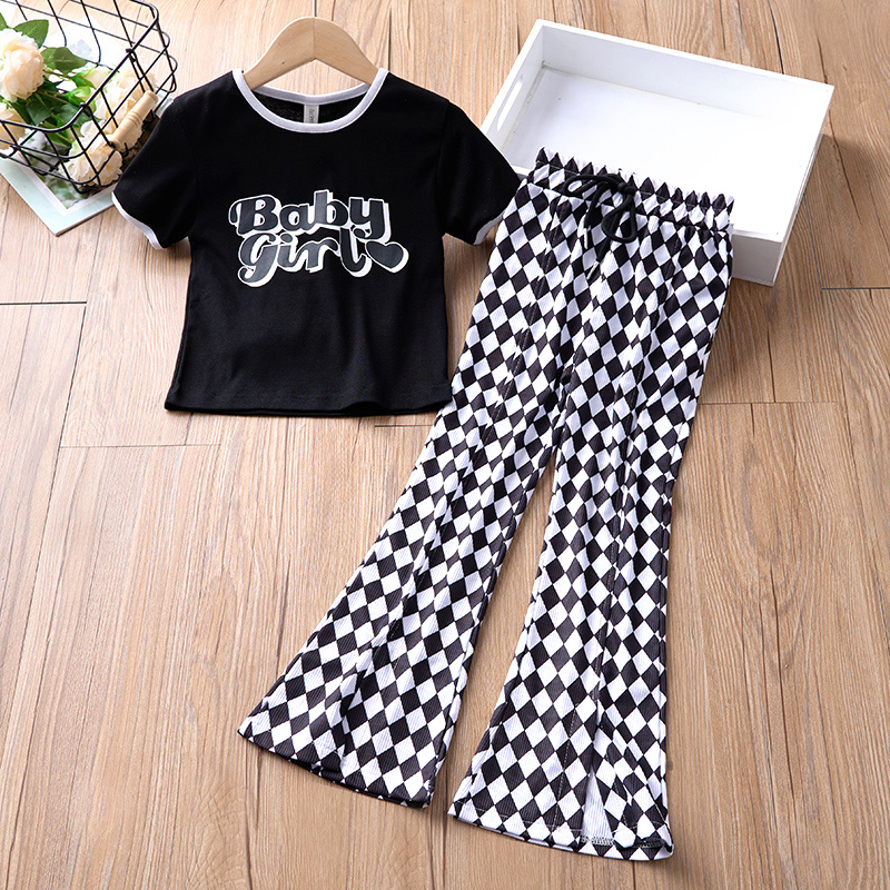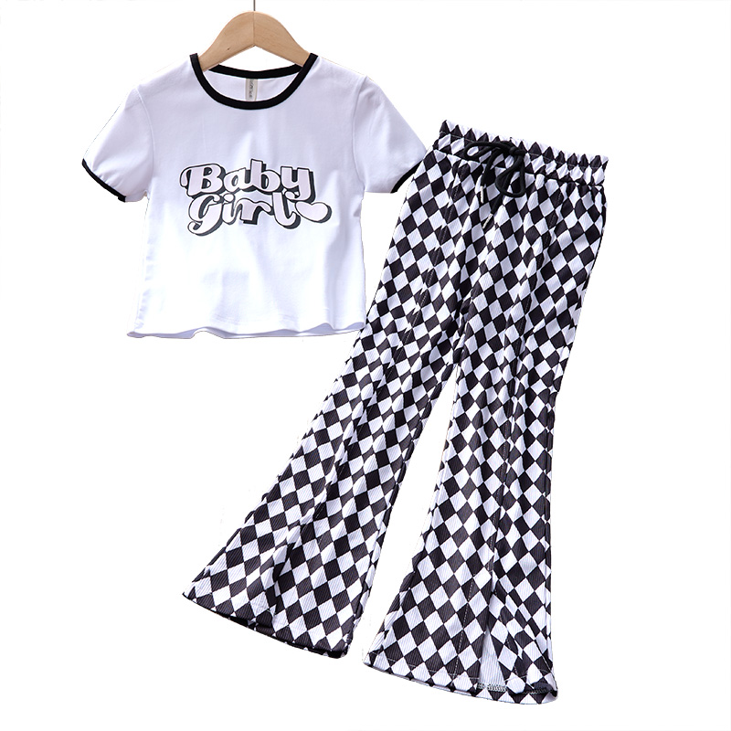 短袖 薄款 T恤喇叭裤 子小女孩大童防蚊裤 女童套装 宝宝裤 两件套夏装