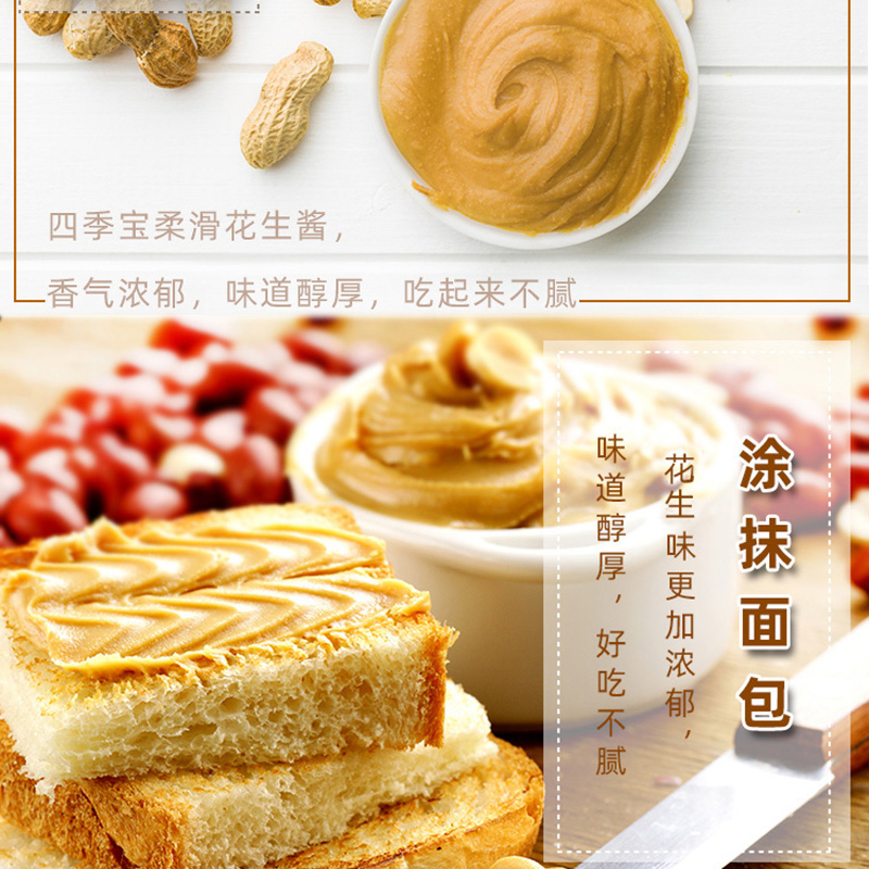 四季 早餐涂抹酱料拌面调味酱 宝柔滑花生酱290g细腻纯花生酱家庭装