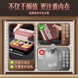 岛奇304不锈钢饭盒学生专用上班族便携餐盘分格饭盒可微波