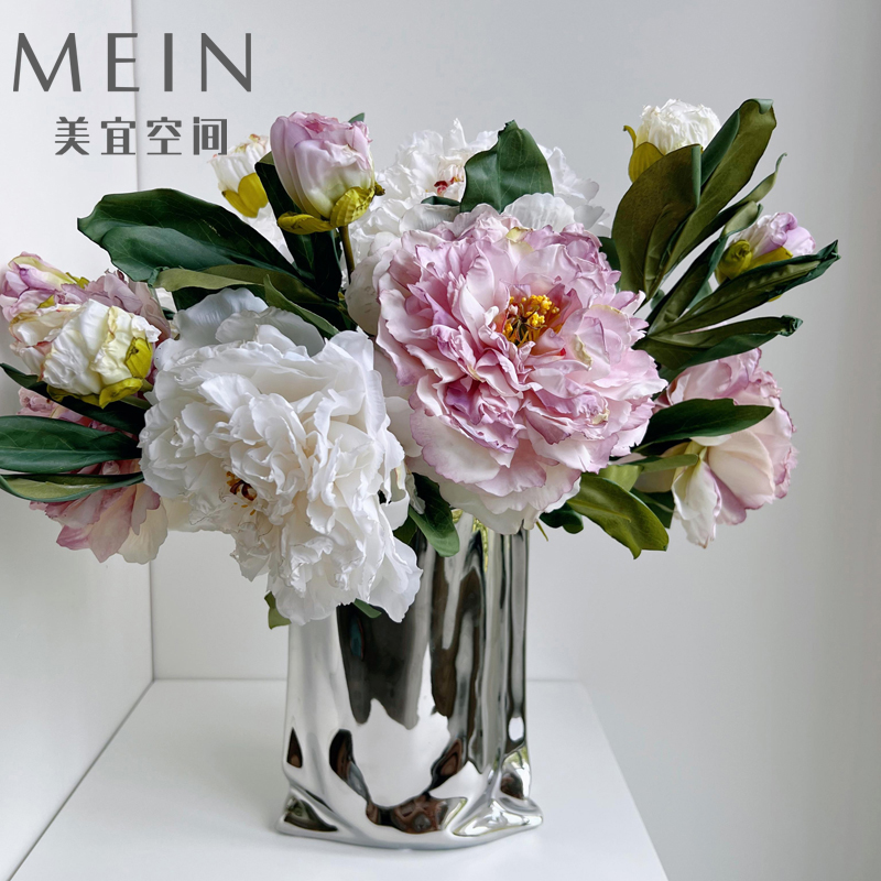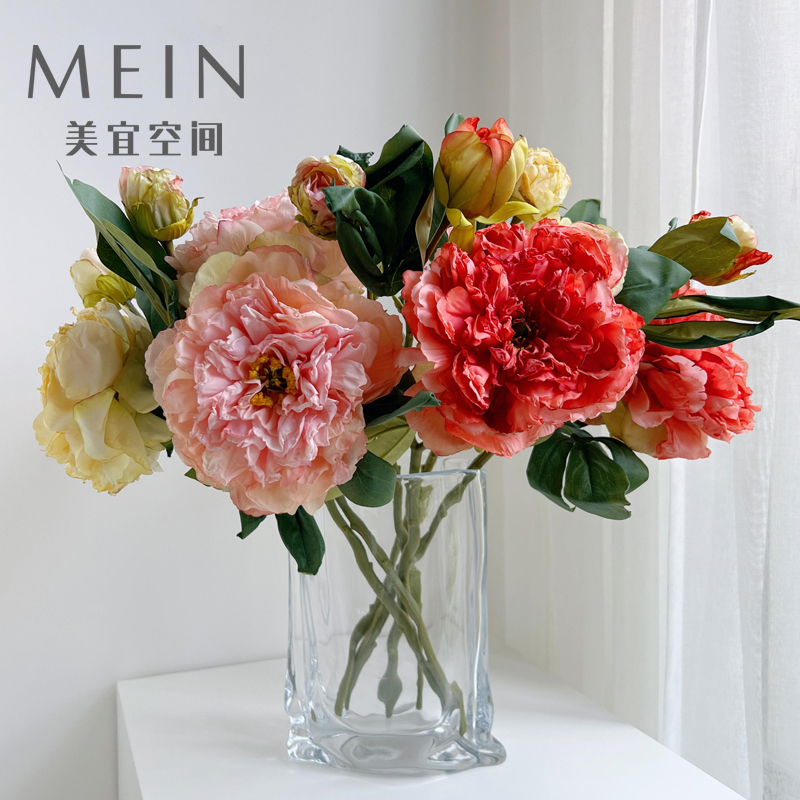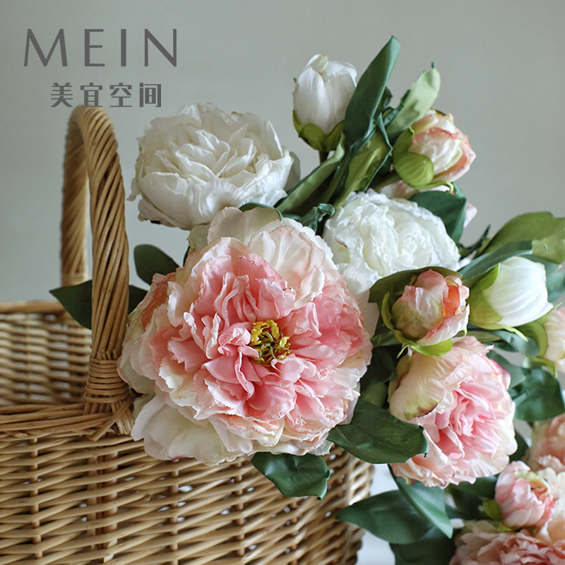 法式 饰 焦边牡丹仿真花假花绢花摆件客厅餐桌干花花束摆设家居装