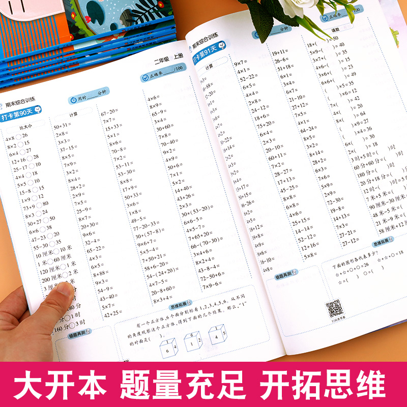 一二三年级上册下册10000道口算天天练人教版 小学生123年级数学口算题卡计算题同步专项训练每天100题计算能手小达人强化练习册