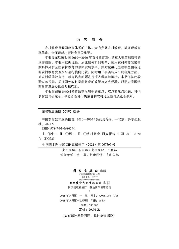 中国农村教育发展报告2010—2020 社 杨润勇等科学出版