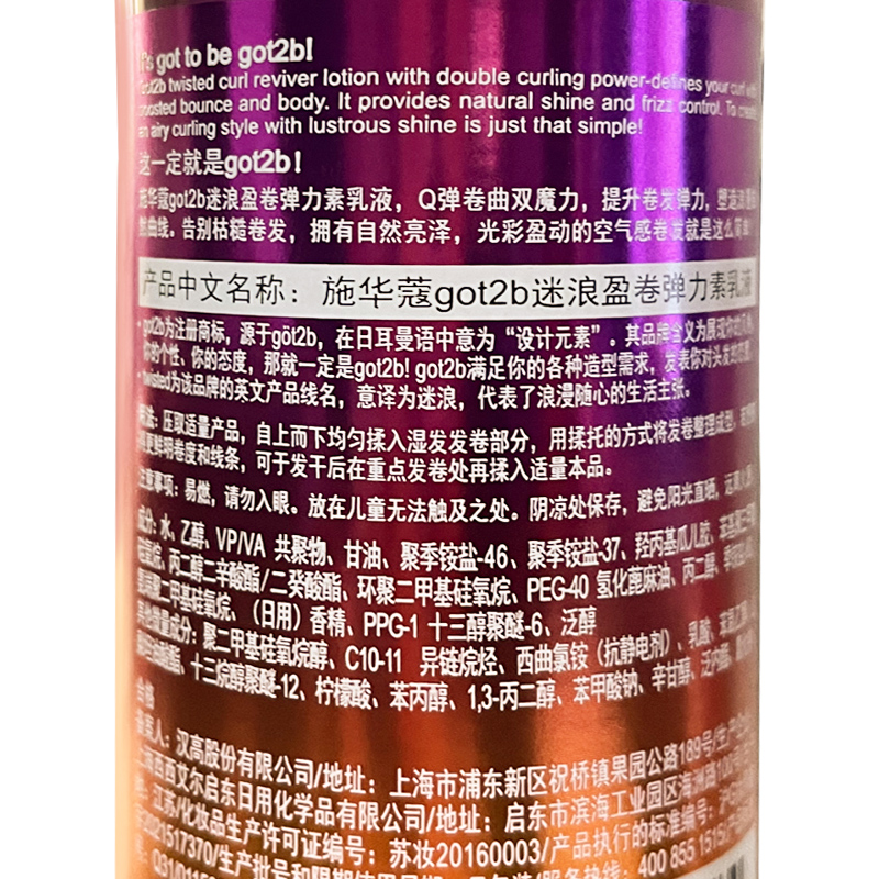 施华蔻got2b迷浪盈卷弹力素乳液100ml保湿 护卷发碎发定型蓬松