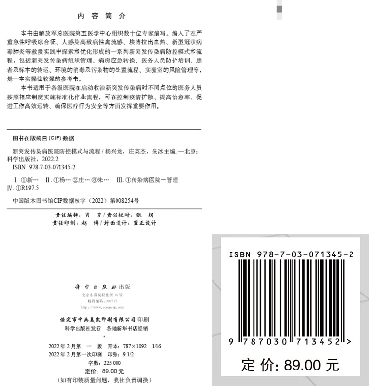 与流程杨兴龙庄英杰朱冰主编科学出版 新突发传染病医院防控模式 社9787030713452 现货平装 正版