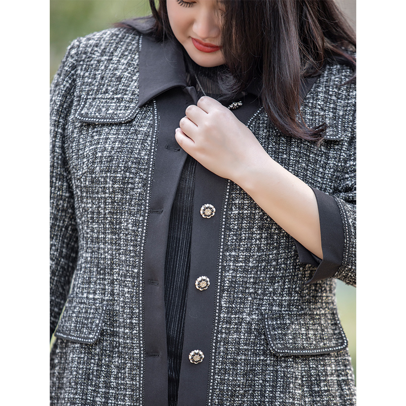 高端女装 大码 减龄短外套女胖mm时髦两件套 小香风套装 美丽客栈