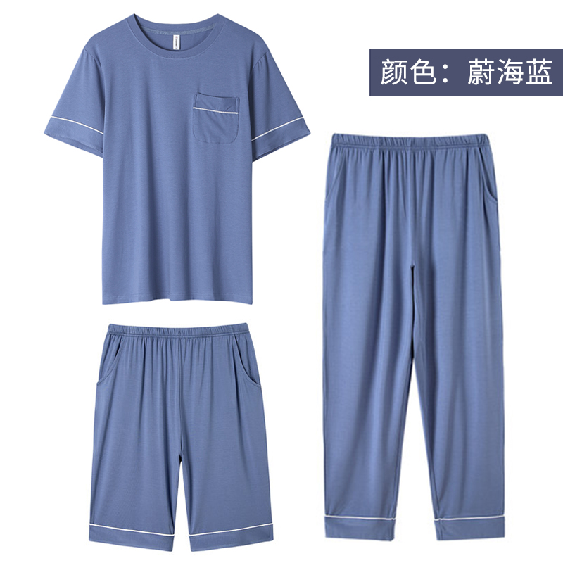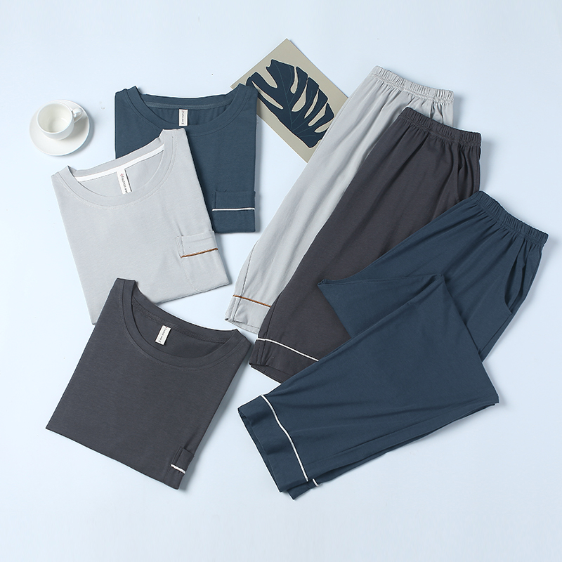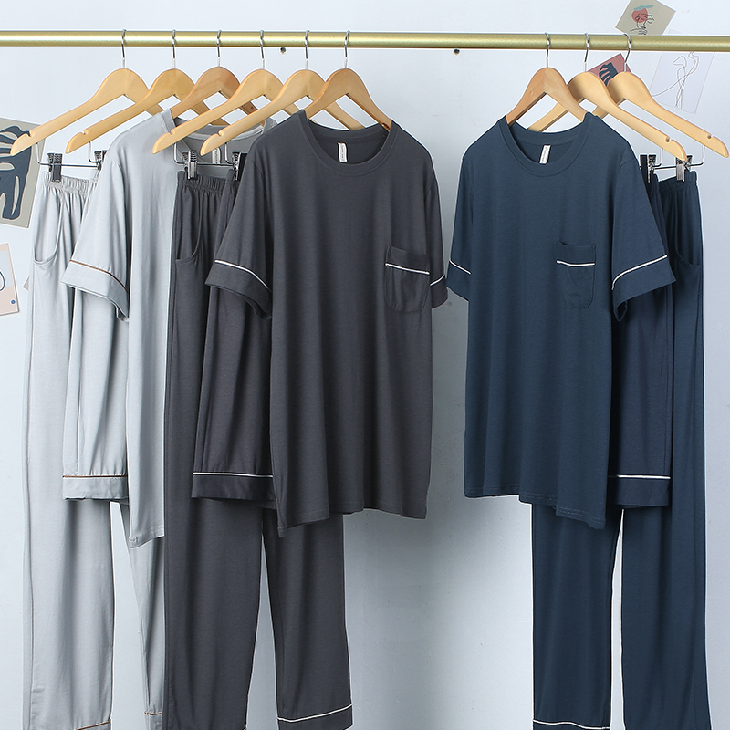 睡衣春秋款 青年家居服套装 圆领套头夏季 秋冬大码 薄长袖 莫代尔男士