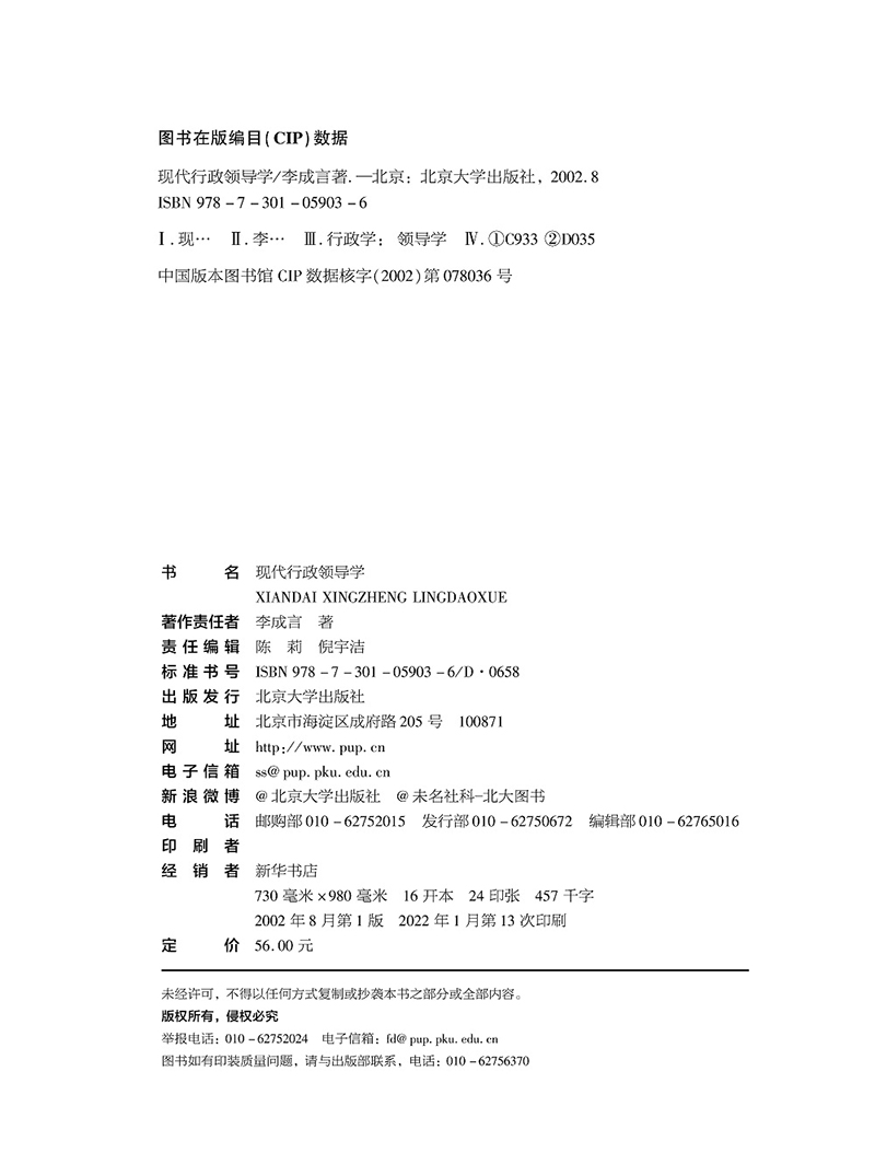 新书 北京大学出版 现代行政领导学 21世纪公共管理学系列教材 社9787301059036 李成言 北大版
