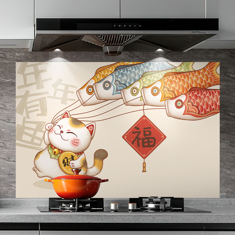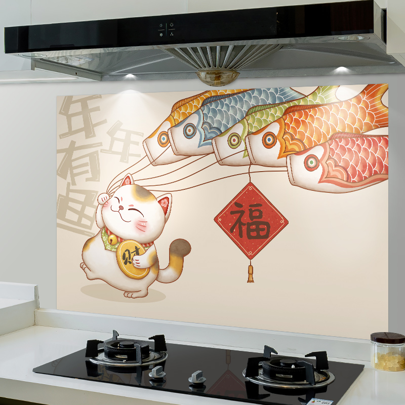 厨房防油贴纸阻燃耐高温瓷砖遮丑墙纸灶台装 饰防水防污自粘墙贴画