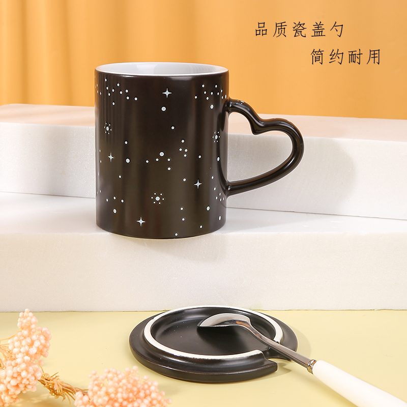 陶瓷马克杯带盖勺咖啡杯家用情侣喝水杯杯子男生女生办公室茶杯