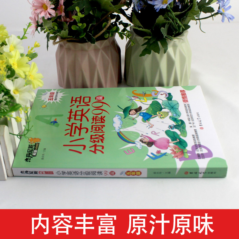 小学英语分级阅读99篇五年级上下册读物有声音频彩绘阶梯阅读理解听力强化训练基础教材同步单词语法小学生100篇课外阅读英语绘本