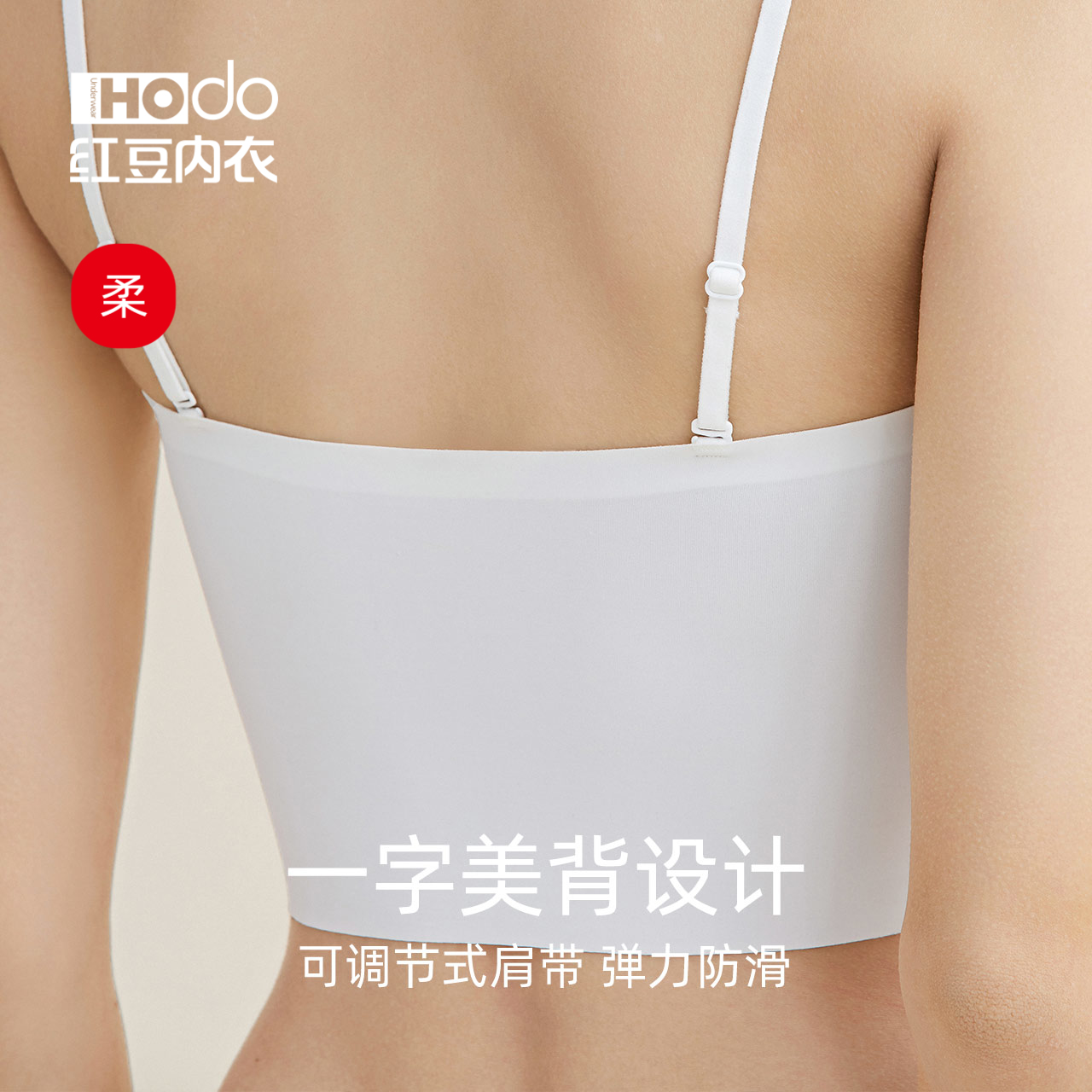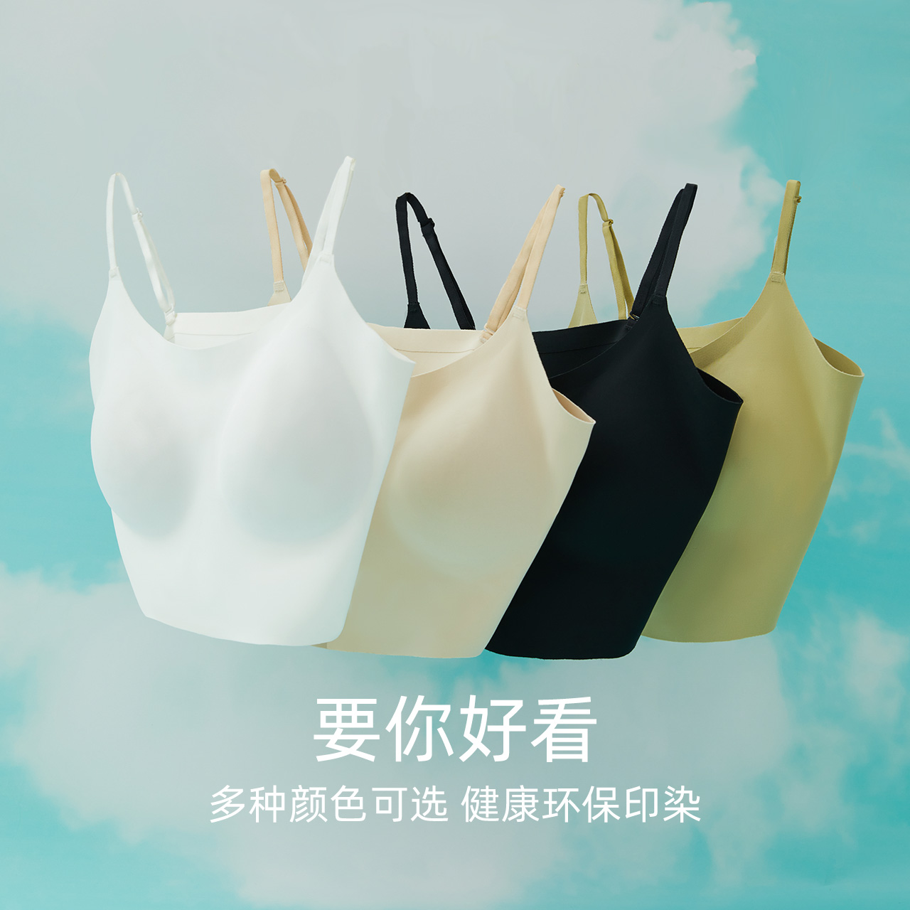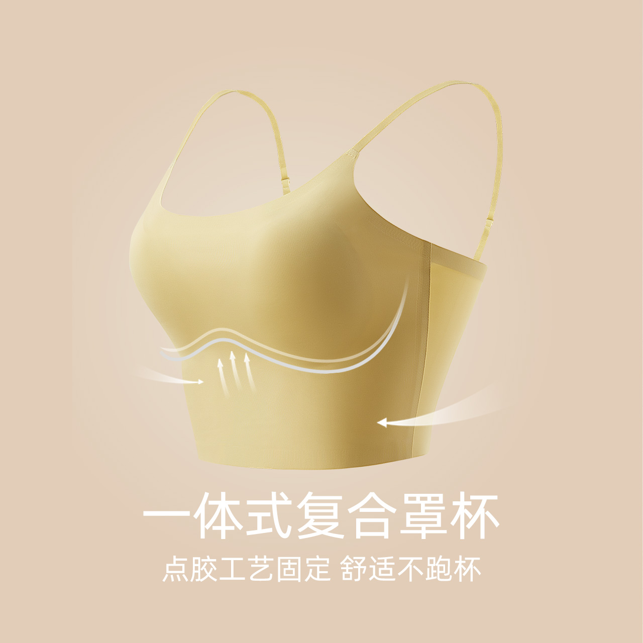 红豆女士冰丝无痕吊带背心带胸垫一体式 免穿文胸内搭夏薄打底内衣