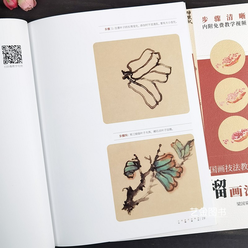 案头必备 社 石榴画法中国画技法教程内附教学视频梁国荣编写意花卉画法古画临摹技法吉祥花卉技法教程安徽美术出版