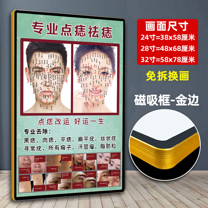 痣相图点痣宣传图美容院祛痣海报广告图面部图男女面痣图取痣图