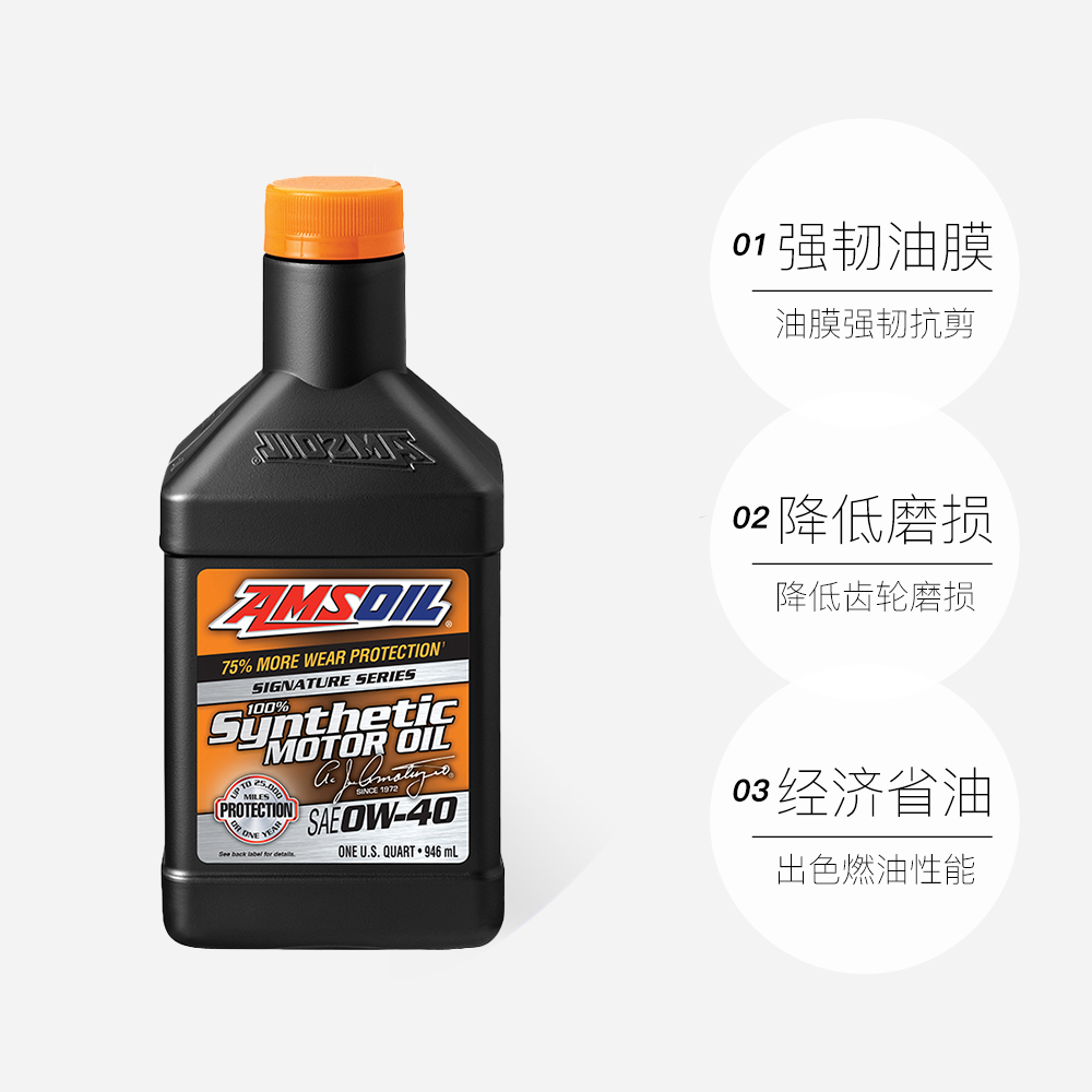 美国进口安索签名版 40全合成汽车发动机机油0W40正品 自营