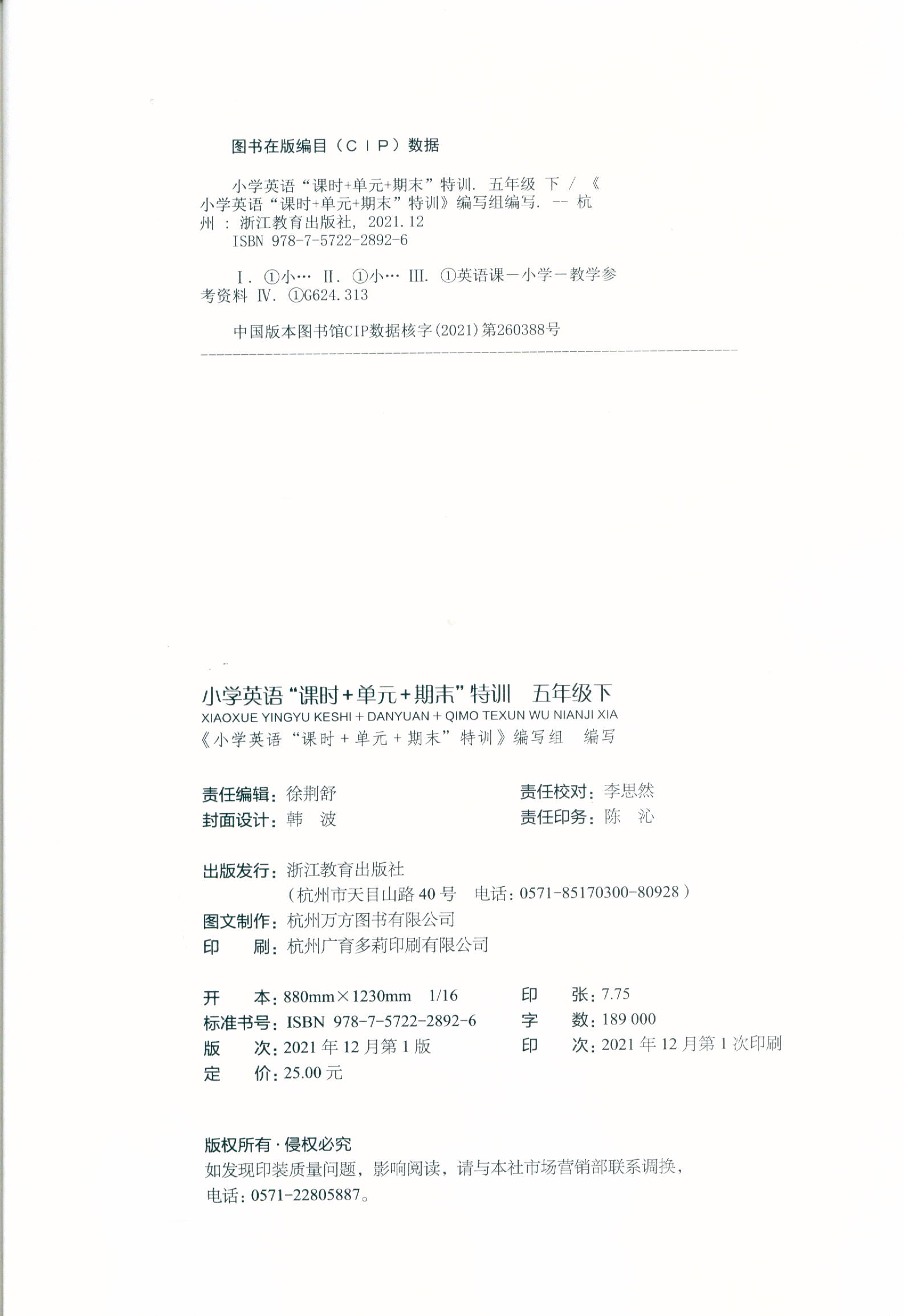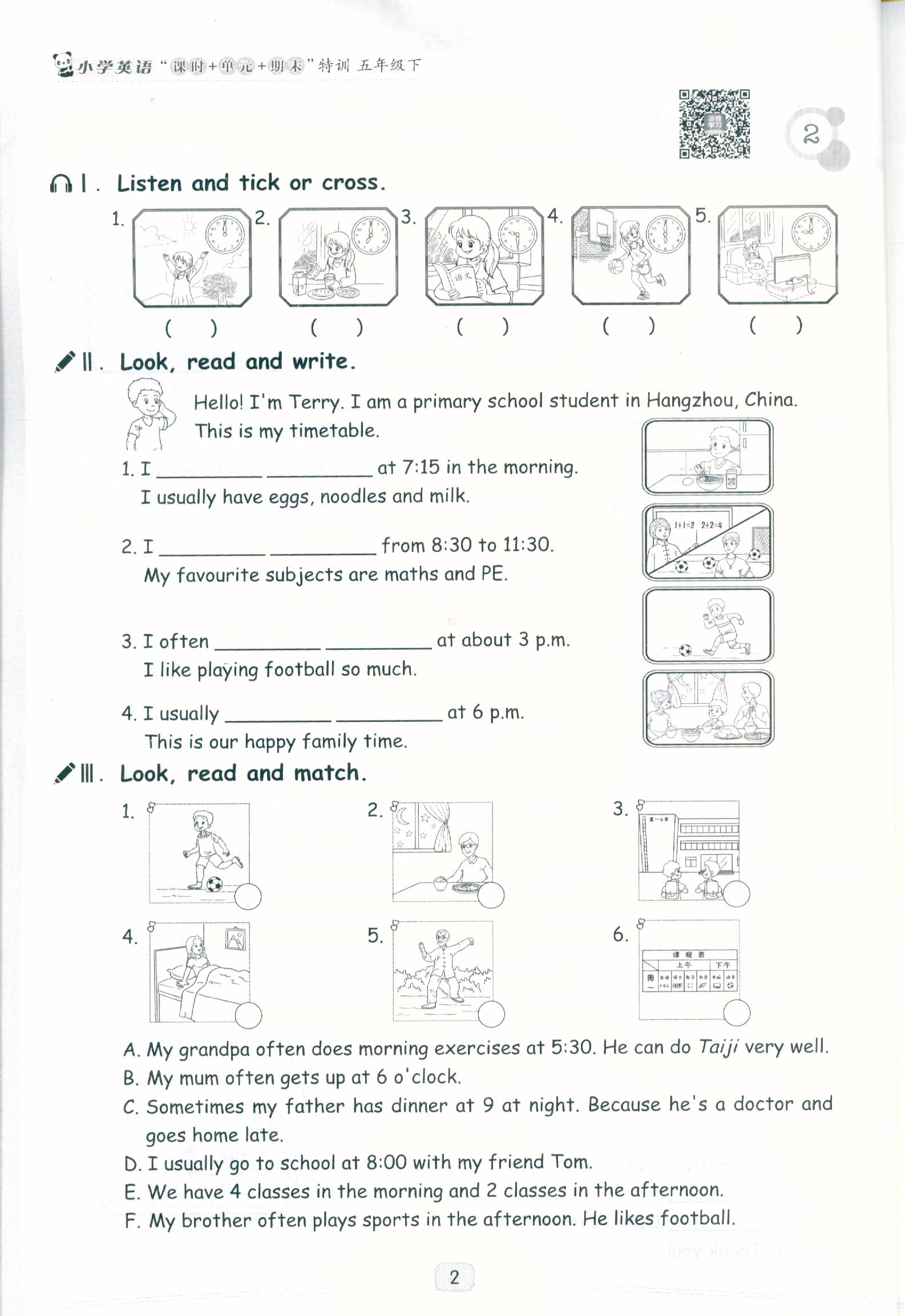 5下教材同步测试卷题听力扫码 2022小学英语课时 社人教版 期末特训五年级下册浙江教育出版 训练课前课后达标复习资料一课一练 单元