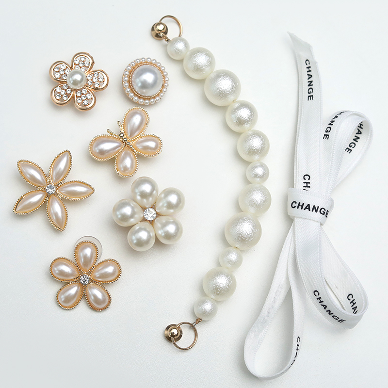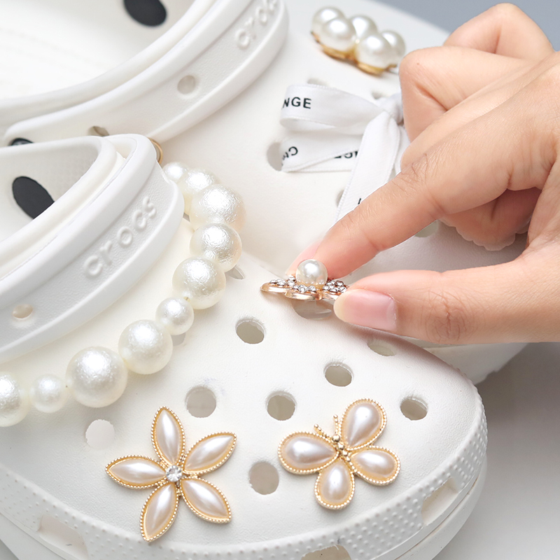 花diy凉鞋 洞洞鞋 饰扣crocs鞋 装 卡扣珍珠链条 配饰小香风cross拖鞋