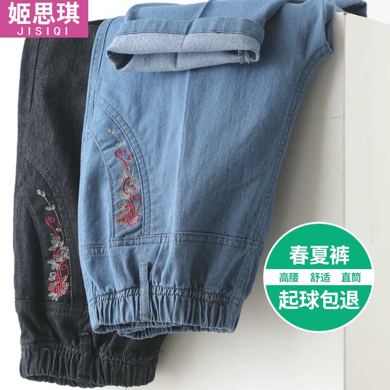春秋款 奶奶裤 宽松直筒老人女裤 70岁老太太长裤 春装 老年人牛仔裤