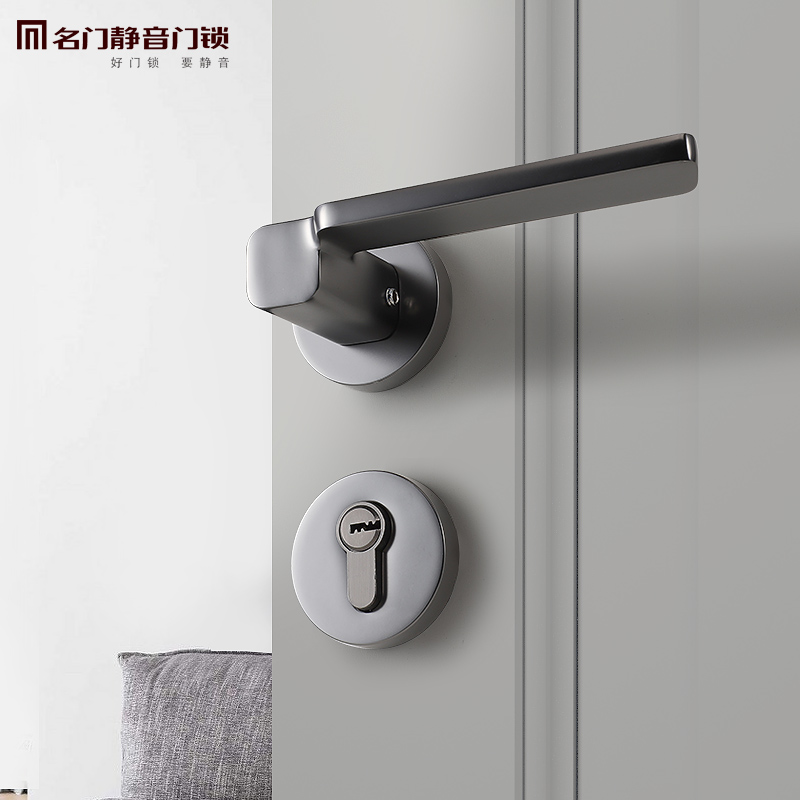 名门静音门锁室内锁具家用通用型卧室房门黑色金色门把手VF88135