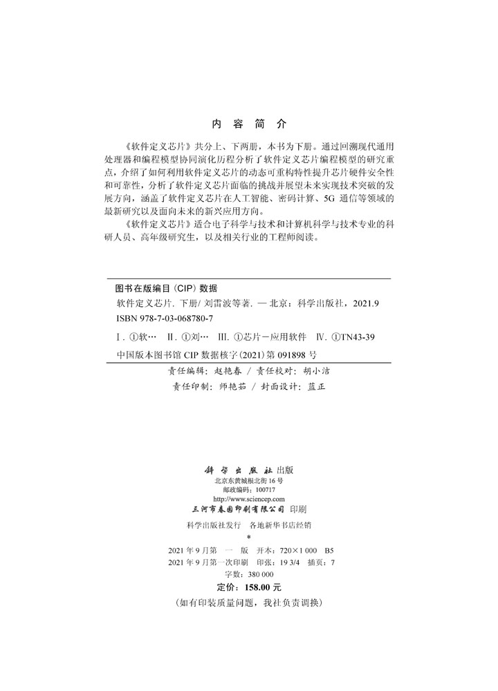 著 软硬件技术 专业科技 软件定义芯片.下册 科学出版 等 电信通信专业科技 社9787030687807 刘雷波