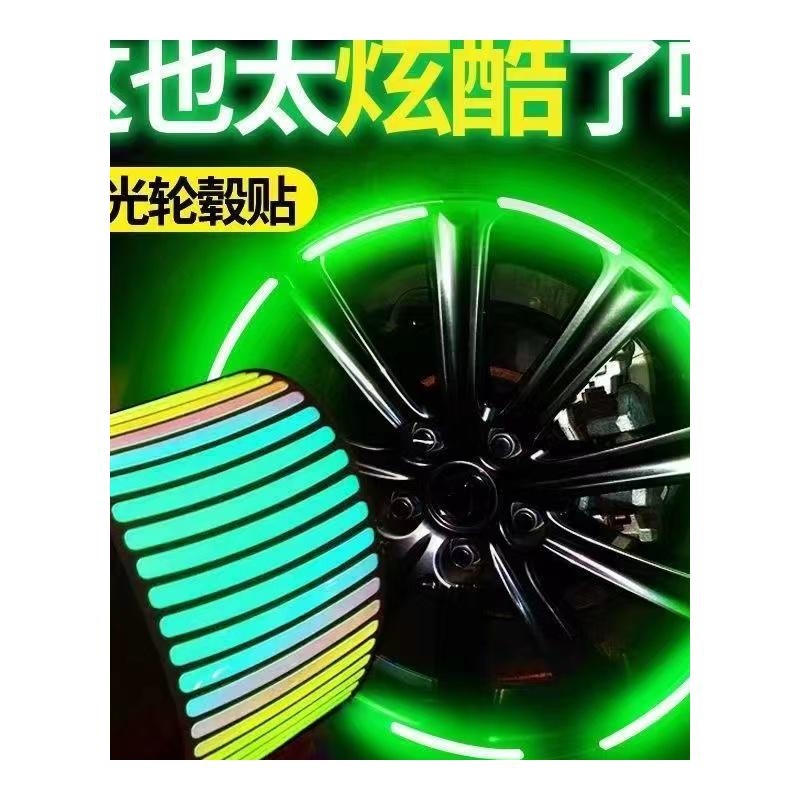 汽车轮毂反光贴个性 饰车贴 创意电动车摩托轮胎警示贴纸彩虹夜光装