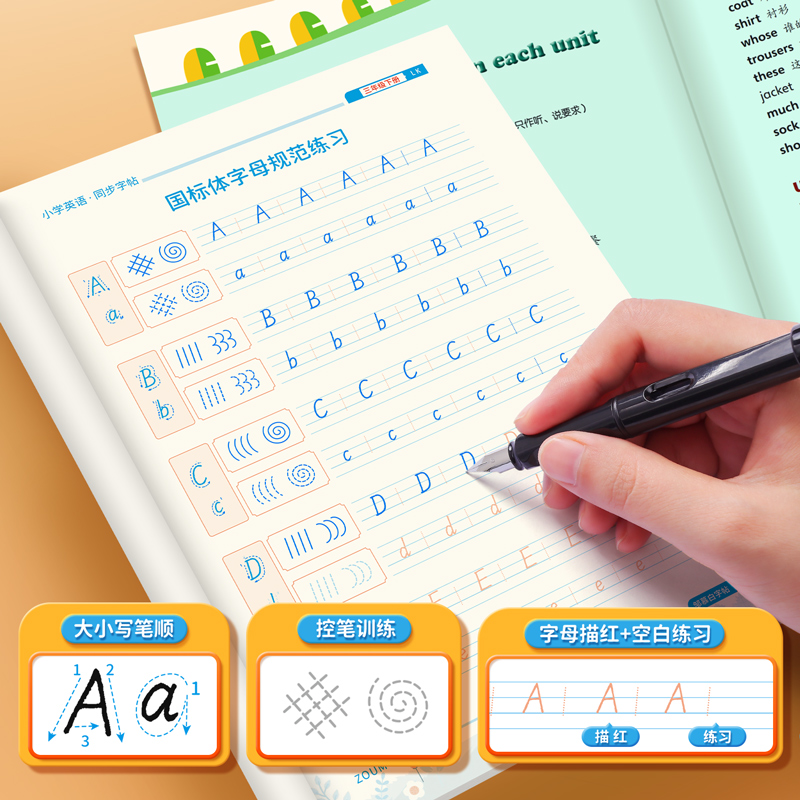25新版 教材五四制同步单词短语字母练习三四五年级上下册国标体临摹描红英文词汇课堂作业强化训练字帖 英语课本山东省小学生鲁科版