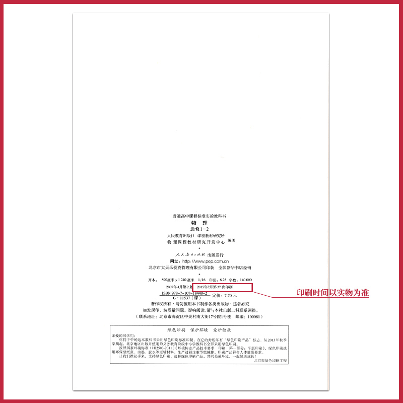 社正版 物理1 高中教材课本教科书人民教育出版 高中物理书选修1 全新现货彩色LJC 2人教版