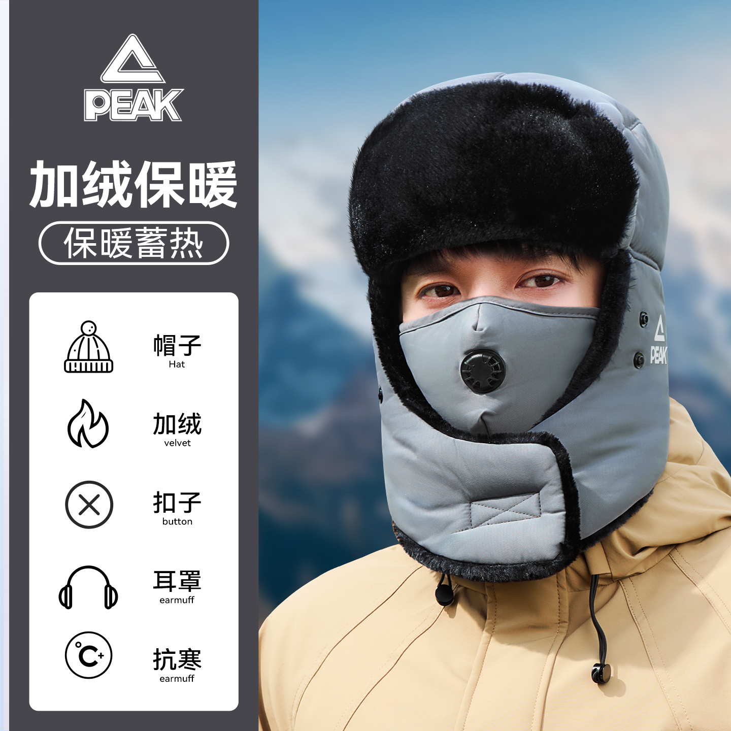 jeep吉普雷锋帽男冬季 防寒护耳加绒女骑车防风面罩保暖加厚帽子冬