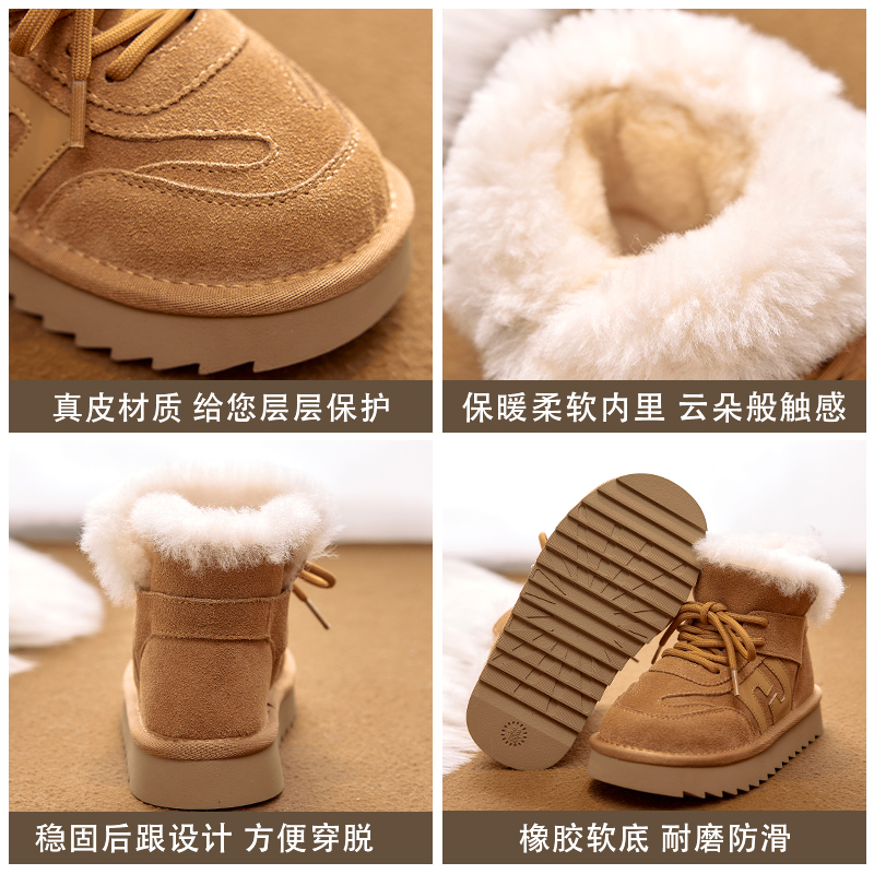 皮毛一体短筒靴加厚防滑棉鞋 加绒雪地靴女外穿厚底2025年冬季 新款