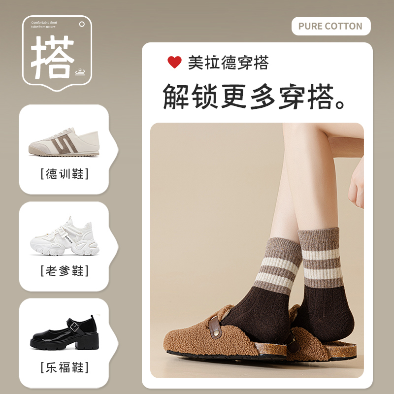 配勃肯鞋 纯棉纱线月子袜美拉德无骨长筒袜 袜子女中筒袜2025秋冬季