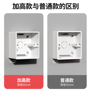 加高加深开关插座明线盒86型接线底盒明装 插座盒50mm加厚通用线盒