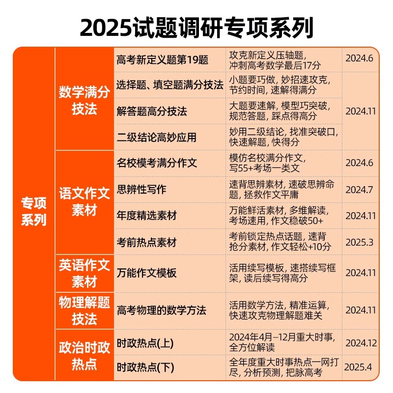 2025天星教育试题调研第五辑语文数学英语物理化学生物政治历史地理文综理综高考试题调研第5辑模型解题作文素材书面表达高分技法