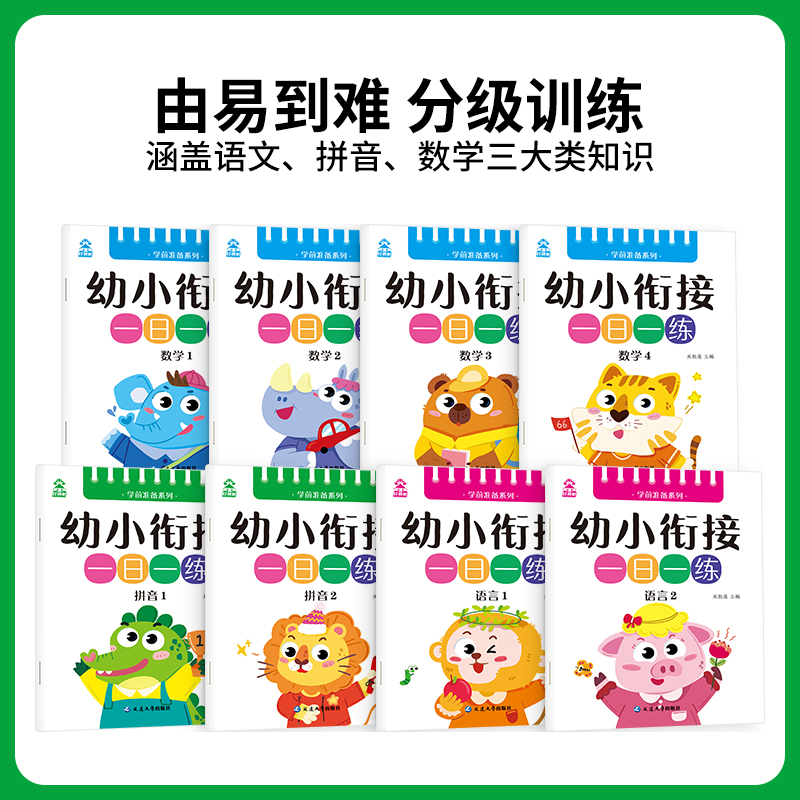 幼小衔接教材全套一日一练语文语言拼音数学幼儿园课本大班升一年级学前训练学前班天天练凑十法10以内加减法幼升小入学准备练习册