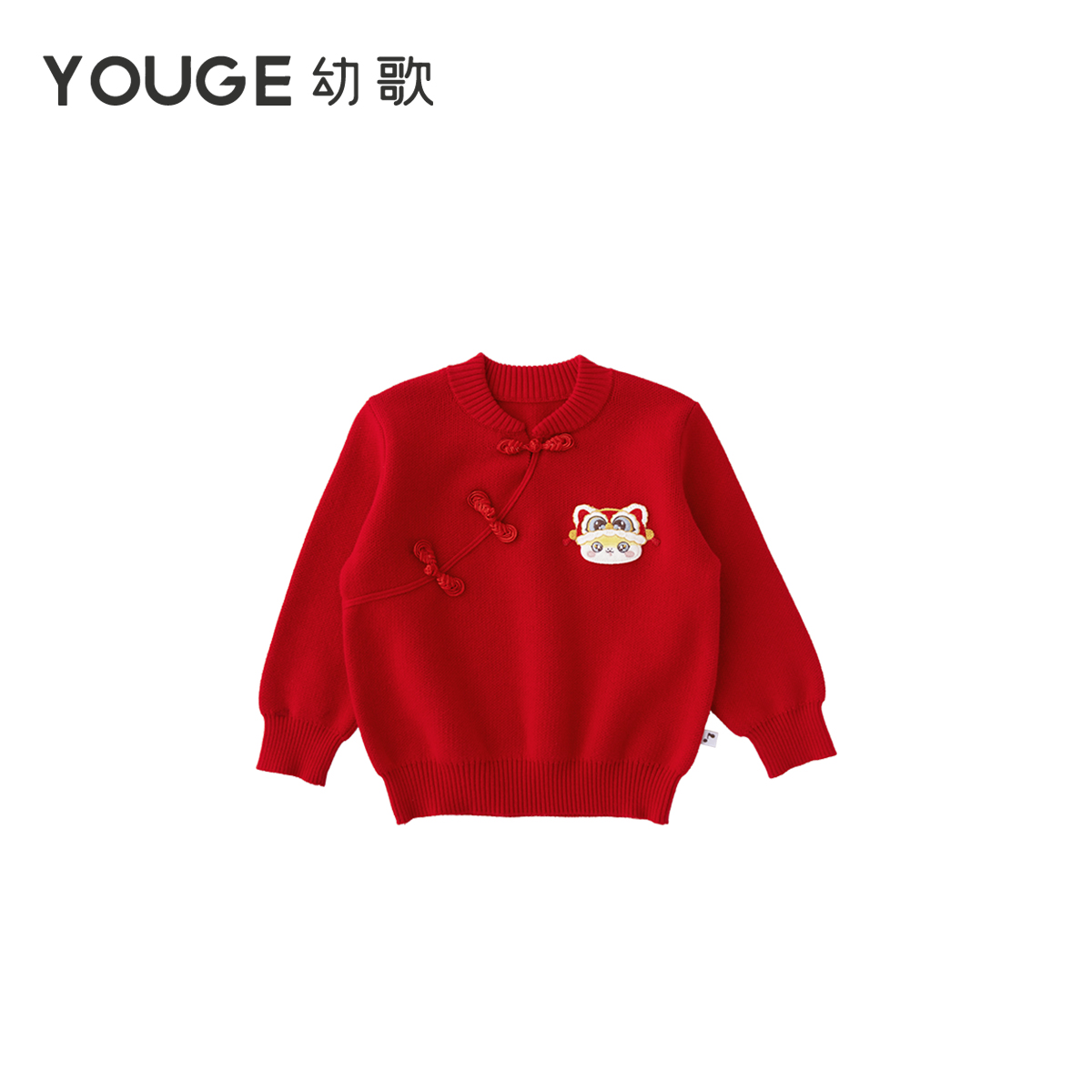 国风画蛇添福暖冬喜庆盘扣绣标舒适毛衣 新款 YOUGE幼歌 婴幼儿冬季