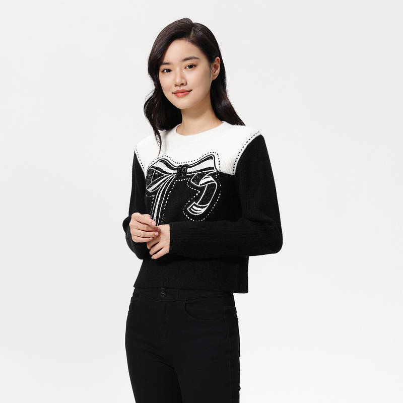 绞花肌理圆领毛衫 森柔 短款 女冬季 百搭叠穿打底上衣 森马针织开衫