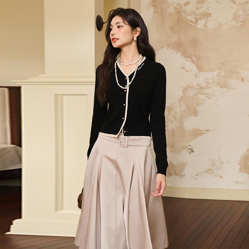 银泰百货精品 秋冬气质V领羊毛开衫 301355 Quarters Three