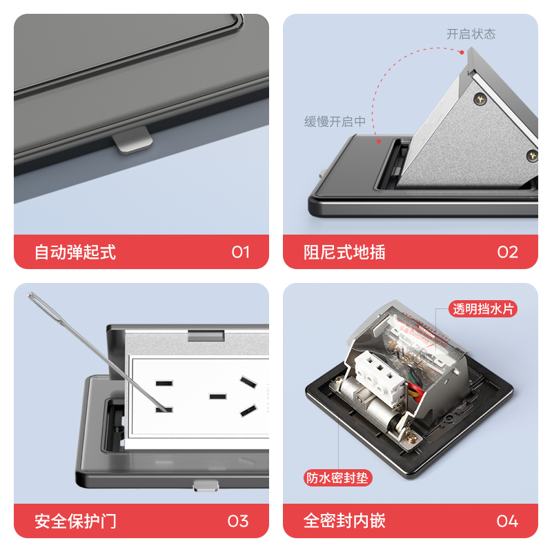 钢化玻璃地插座超薄隐形防水阻尼慢弹隐藏式 地面五孔网线地板插座