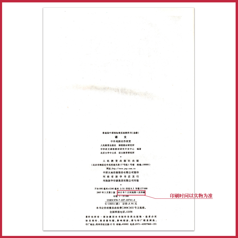 全新现货彩色LJC 社正版 语文中外戏剧名作欣赏高中语文书选修中外戏剧名作欣赏人教版 高中教材课本教科书人民教育出版