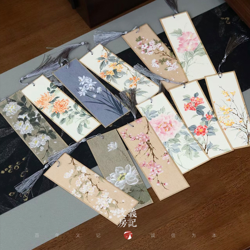 义记宣 双面中国风书签空白卡DIY褚笺空白书签宣纸小楷书法国画没骨画纸楮笺宣纸卡纸 楮皮书签批发50张装